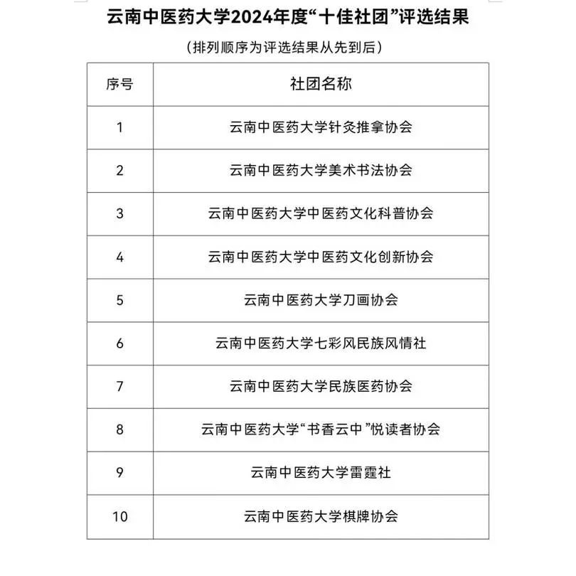 最终,以下社团荣获2024年度“十佳社团”称号。