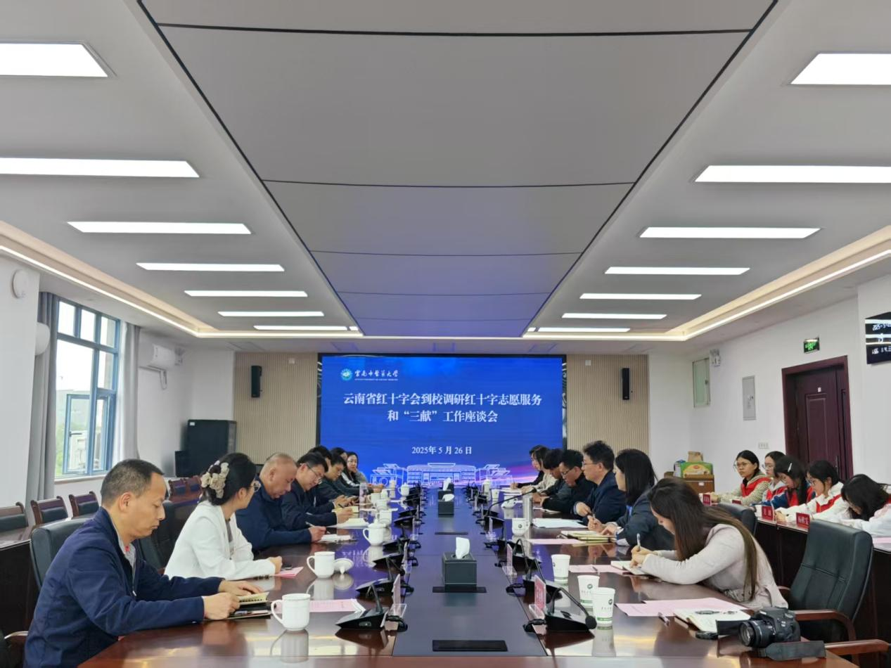 5月26日下午,云南省红十字会党组成员、副会长李加坤,昆明市红十字会、呈贡区红十字会等一行到校调研红十字志愿服务和“三献”工作。校党委副书记杨鹤清陪同调研并主持召开座谈会。