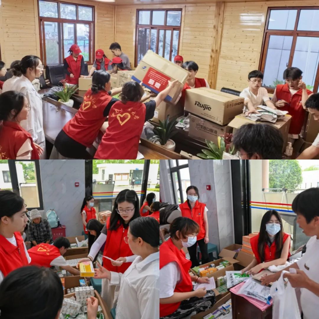 学生们整理发放药品