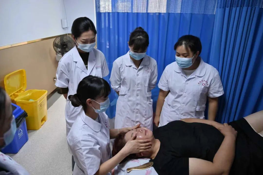 许家艳老师正在进行中医推拿脸部诊疗