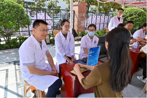 顾海潮老师带着亲切笑意倾听患者讲述,让健康关怀顺着温暖淌进患者心里