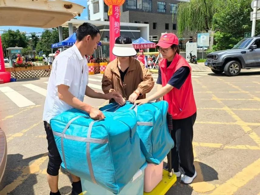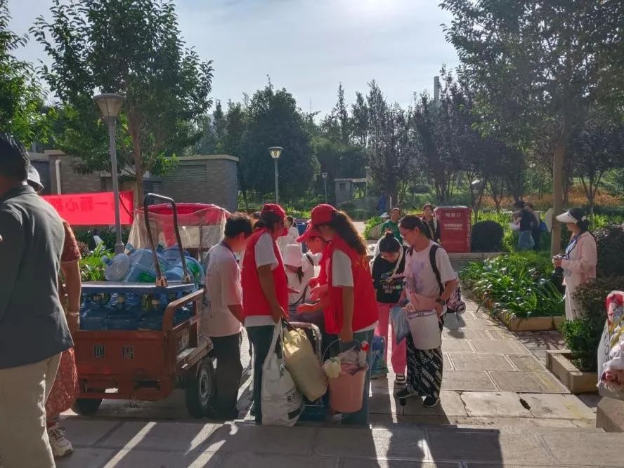 后勤组的“小红帽”将饮用水补给遍布校园各个角落,搬运生活物资,为新生住宿提供便利,是云中学子坚实的后盾。