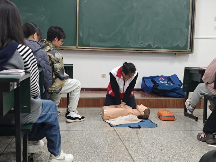 培训采用“理论+实操”的教学方式,结合实际案例,围绕伤口处理、心肺复苏、海姆立克法等急救知识进行系统讲解,并介绍了自动体外除颤仪(AED)的使用原理,详细讲解了各项技能的操作步骤和注意事项。同学们认真聆听理论讲解、仔细观看操作要点、积极提出问题,掌握了应急救护的基本知识。