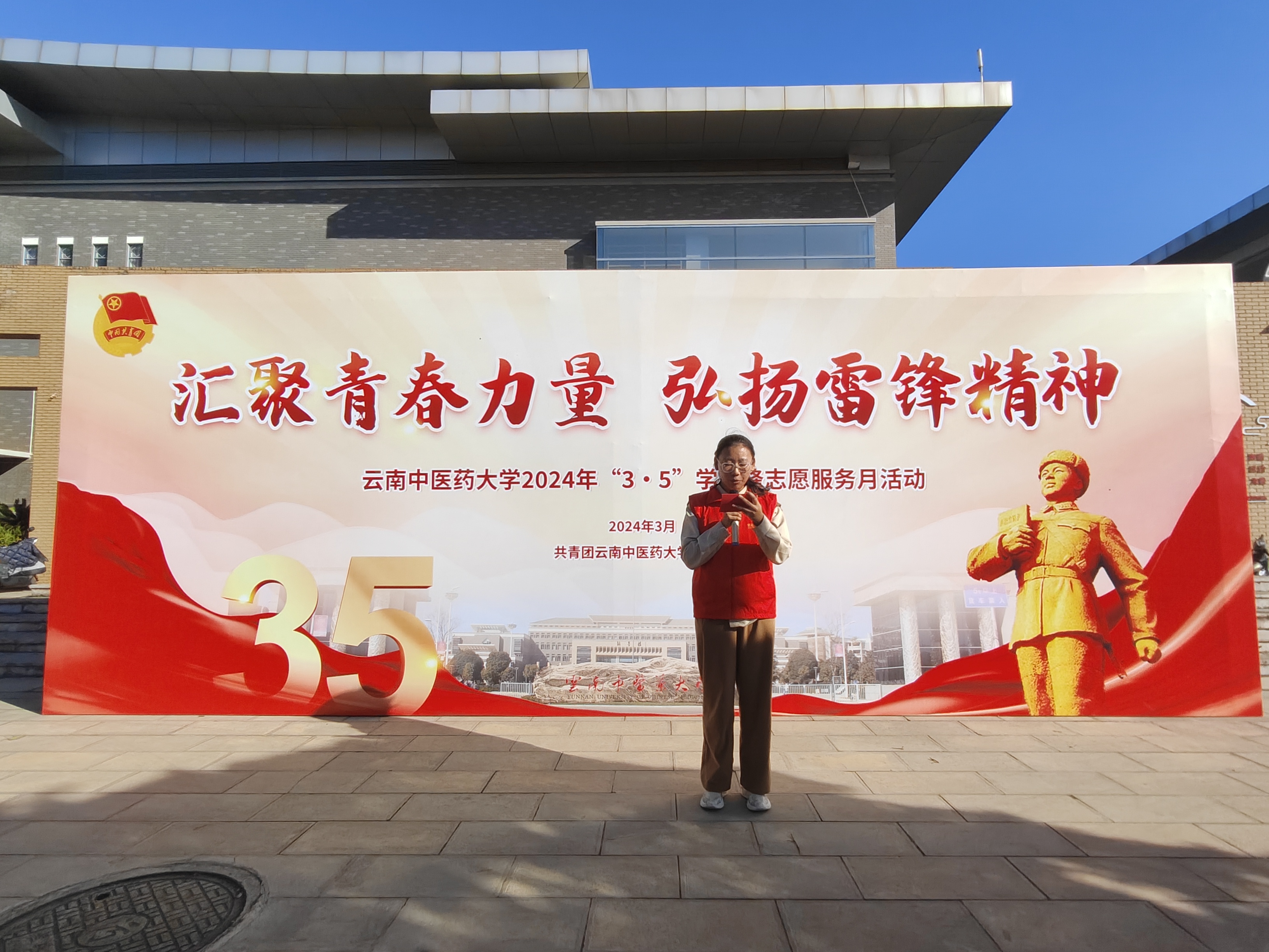校团委号召全校青年学生认真学习习近平总书记重要讲话精神,感悟思想伟力;深刻领会雷锋精神服务人民、助人为乐的核心要义,厚植人民情怀;刻苦钻研中医药知识,提高服务本领;以学雷锋志愿服务月为契机,积极投身公益劳动、志愿服务和文明校园创建活动中,做雷锋精神的忠实传承者和社会主义核心价值观的模范践行者。