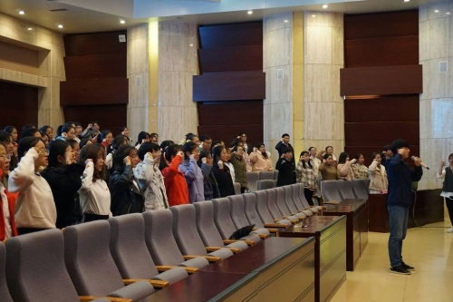 学习会上,校团委老师为2019-2020学年学生会各部门负责人颁发聘书。学生会代表许源带领团学干部一起宣读学生会誓言。
