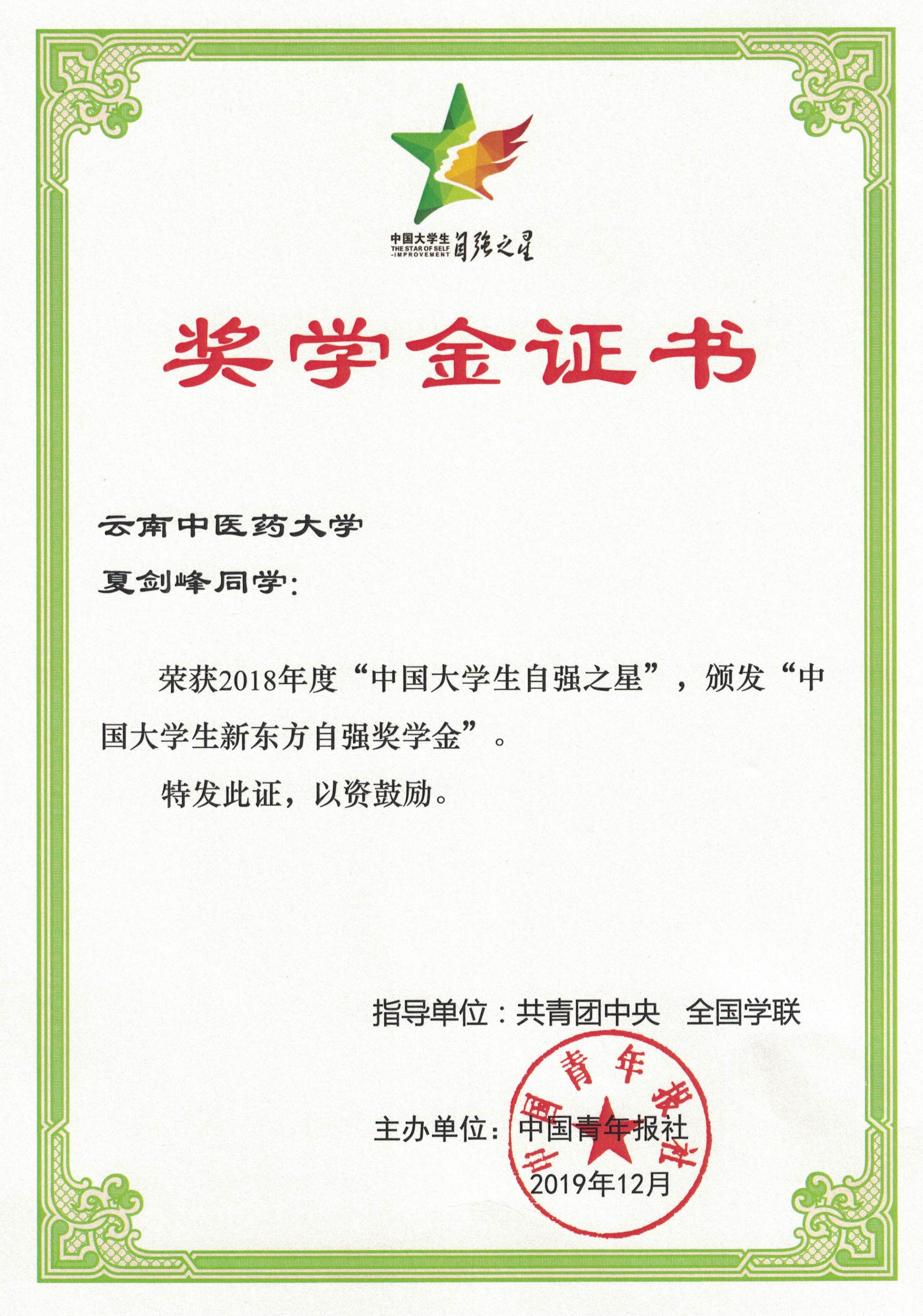 云中团讯(通讯员 资凡妮)近日,由共青团中央、全国学联共同主办的2018年度寻访“中国大学生自强之星”活动正式揭晓。我校基础医学院16级中西医临床医学专业李竞娜、中药学院2016级药学专业夏剑峰荣获荣获2018年度“中国大学生自强之星”称号。