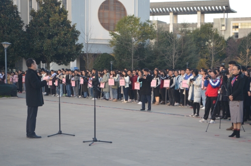 2018 年12月4日7:00“12·4 国家宪法日”集体宪法宣誓活动,在我校呈贡校区五行广场庄严举行。校党委书记王翠岗、副校长祁苑红、李世辉,机关全体成员、各二级学院党政主要负责人、全体干部职工以及2018级全体新生共2000余人到场参加。