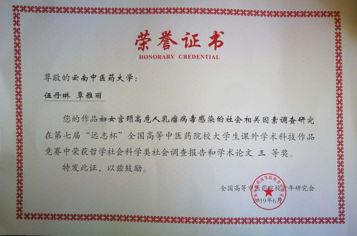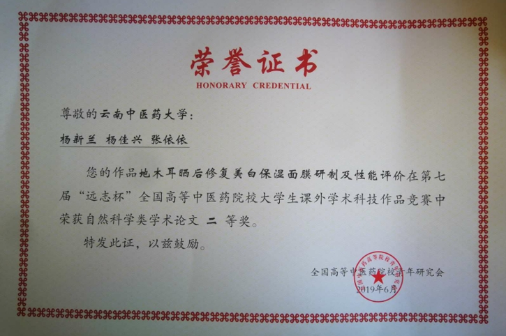 论坛还对第七届“远志杯”全国高等院校大学生课外学术科技作品获奖作品进行了表彰,我校杨新兰、杨佳兴、张依依的作品《地木耳晒后修复美白保湿面膜研制及性能评价》获得自然科学类学术论文二等奖,伍丹琳、覃雅的作品《妇女宫颈高危人乳瘤病毒感染的社会相关因素调查研究》获哲学社会科学类社会调查报告和学术论文三等奖。