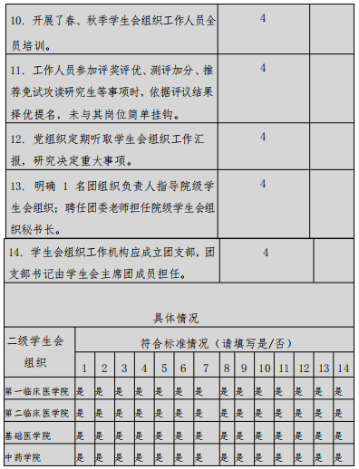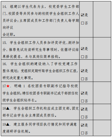 (二)二级学生会组织(含二级院系、书院、分校区等学生会、研究生会)改革自评表