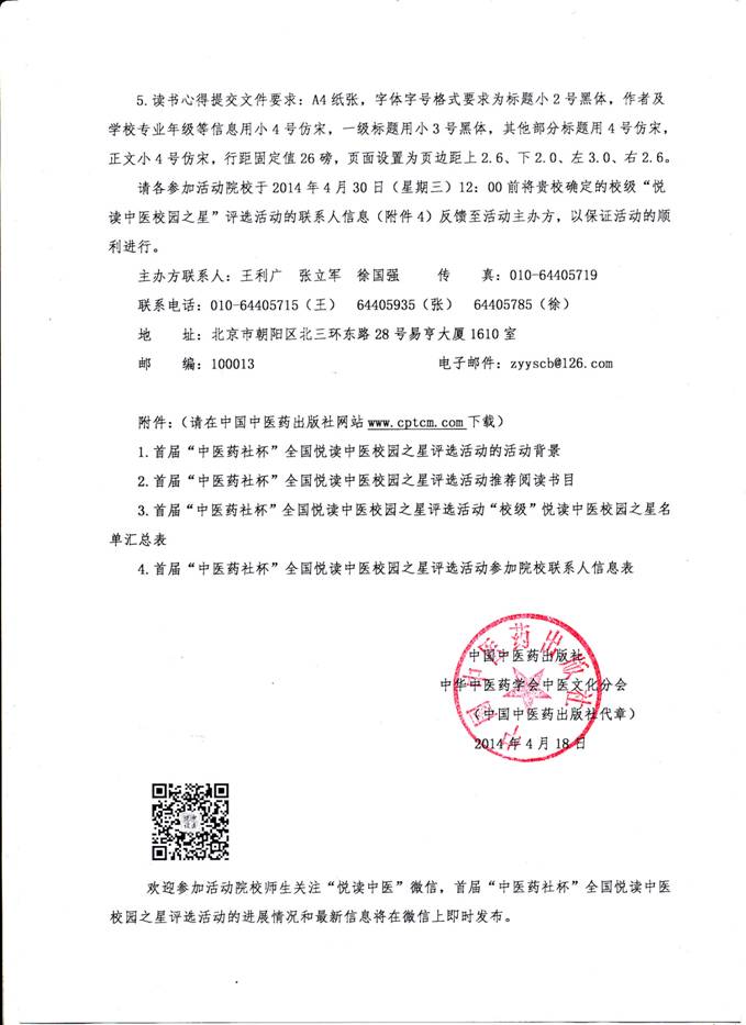 3.学校将邀请专家进行评审,评选出校级“悦读中医校园之星”30名,并推荐10名学生参加全国“悦读中医校园之星”。