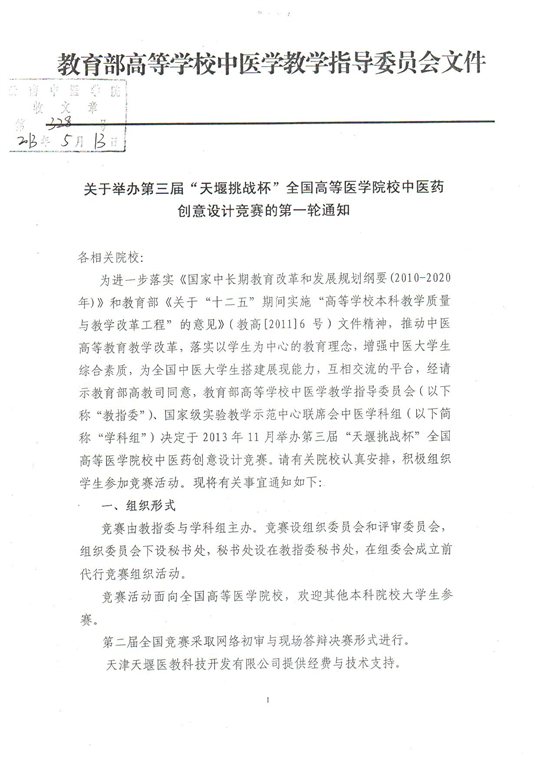 附件:关于举办第三届“天堰挑战杯”全国高等医学院校中医药创意设计竞赛的通知
