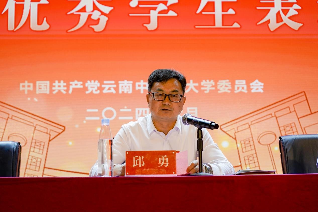 6月6日下午,学校在呈贡校区兰茂堂召开2024年优秀学生表彰大会。校党委书记邱勇教授,校党委副书记、校长丁中涛教授,校党委副书记祁苑红教授、杨鹤清教授,副校长温伟波教授、陈祖琨教授、邰先桃教授出席大会。大会由校党委副书记杨鹤清教授主持。