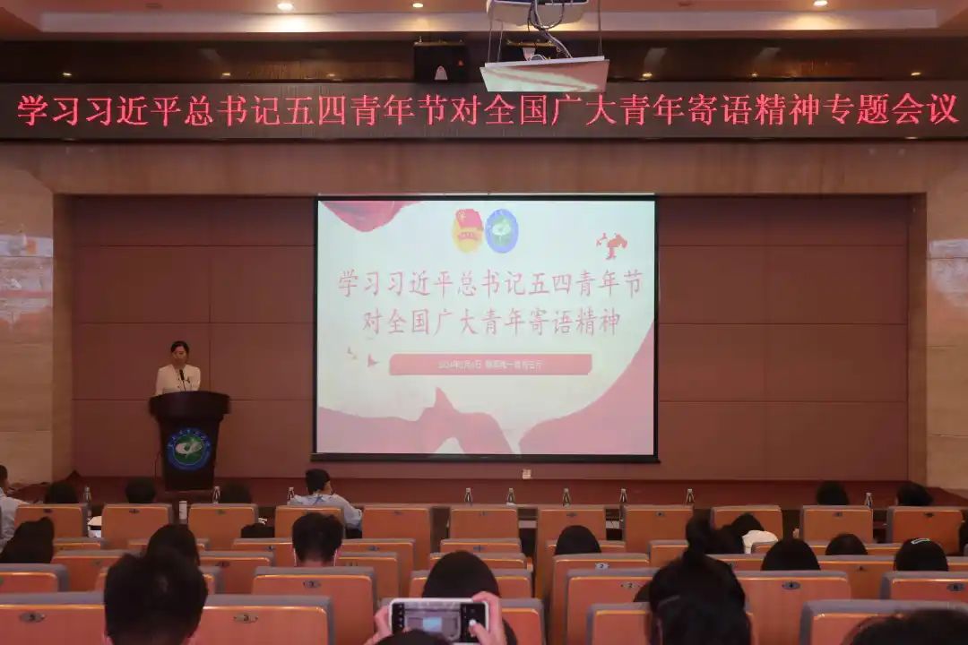 5月6日19:00,校团委组织各级团员青年在呈贡校区翰墨楼报告厅开展学习宣传贯彻习近平总书记重要寄语精神专题会议,各学院团委(团总支)负责人、青马班,校、院研究生会、学生会及全体人员,青年志愿者联合会、大学生艺术团、社团部、青年新媒体中心负责人参会。会议由校团委副书记黄婷婷主持。