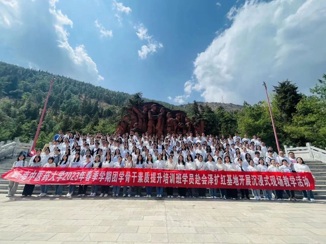 为高质量完成团学骨干素质提升培训工作,大力弘扬爱国主义精神,厚植爱党爱国情怀。4月15日,2023年春季学期团学骨干素质提升培训班 214名师生学员到会泽县扩红基地开展“追寻先辈足迹,赓续红色荣光”沉浸式现场教学活动。