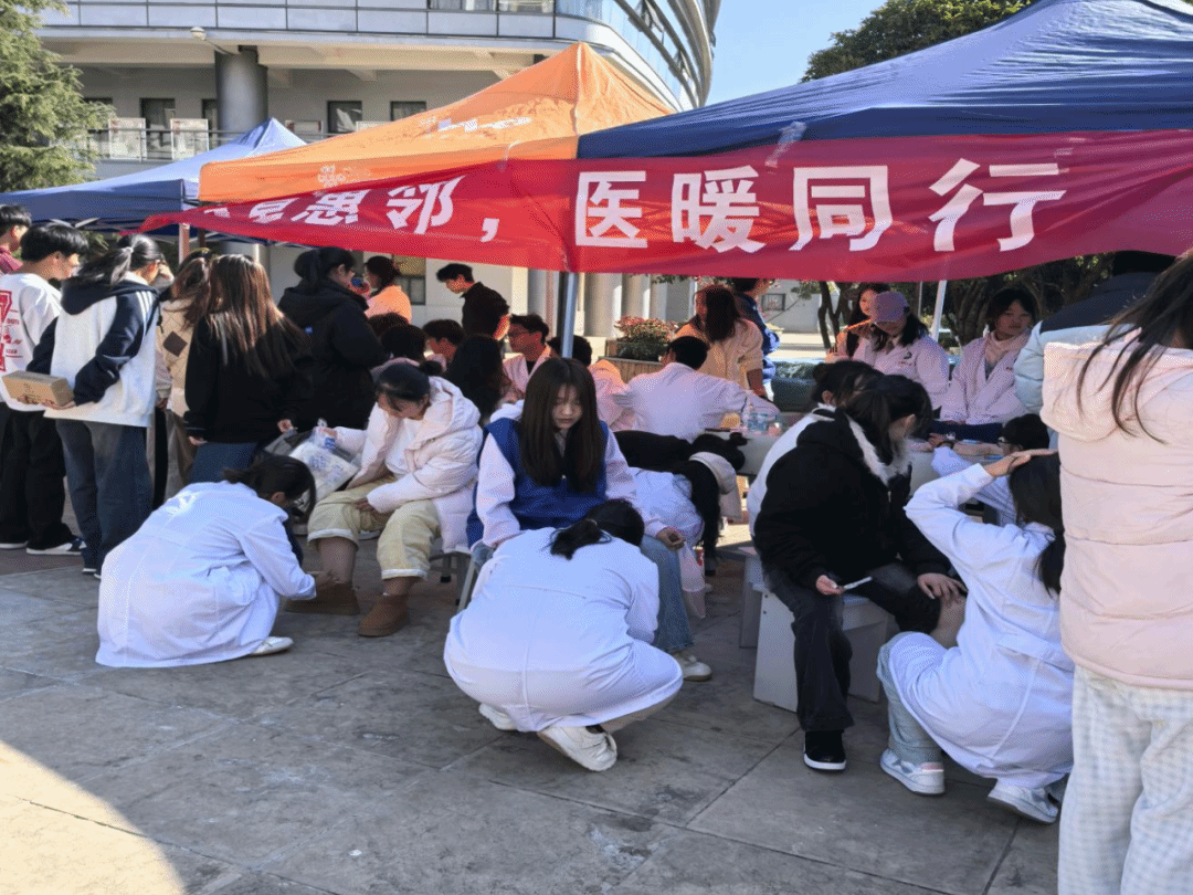活动概况:活动以中医义诊为核心,践行《内经》“秋冬养阴” 理念,通过艾火温阳、膏方蕴养等服务,为社区居民送去健康关怀。既让居民体验到中医技艺的魅力,满足群众对美好生活的健康诉求,也让学子将课堂所学转化为实践能力,深刻领悟 “大医精诚” 的内涵与 “悬壶济世” 的担当。