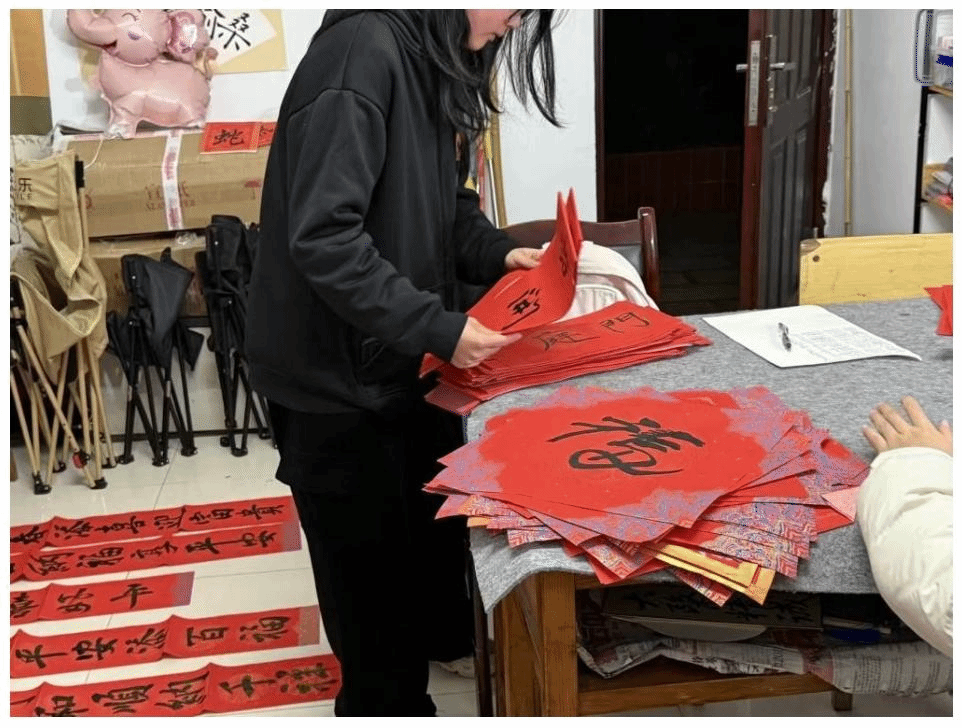 活动概况:活动地点于兰茂堂 111 活动室,书法社同学现场即兴创作春联,成员按排班值班,向领取春联的师生赠送作品并送上祝福。活动结束后,各部门分工完成收尾工作,整理场地并拍摄照片。此次活动既让学子精进书法技艺、传承中华优秀传统文化,又将书法艺术与杏林文化相结合,为校园增添了文化氛围。