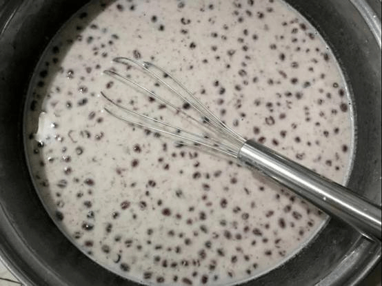 2.马蹄粉250g加水500ml搅匀,过筛,加红豆搅匀为生浆(马蹄粉静置沉底)。