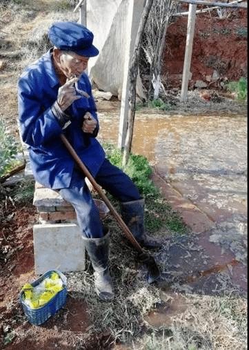 这是我的妈妈,沟渠里的水变小了,她正要打电话询问抽水站的师傅。