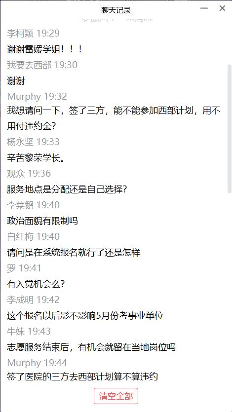 在本次线上宣讲会中,雷媛学姐、张家燕学姐和王黎荣学长介绍了自己的志愿工作经历,并详细介绍西部计划的政策福利,强调西部计划属于志愿服务项目,并不是就业项目,引导大家应摆正自己的心态,积极参与奉献。