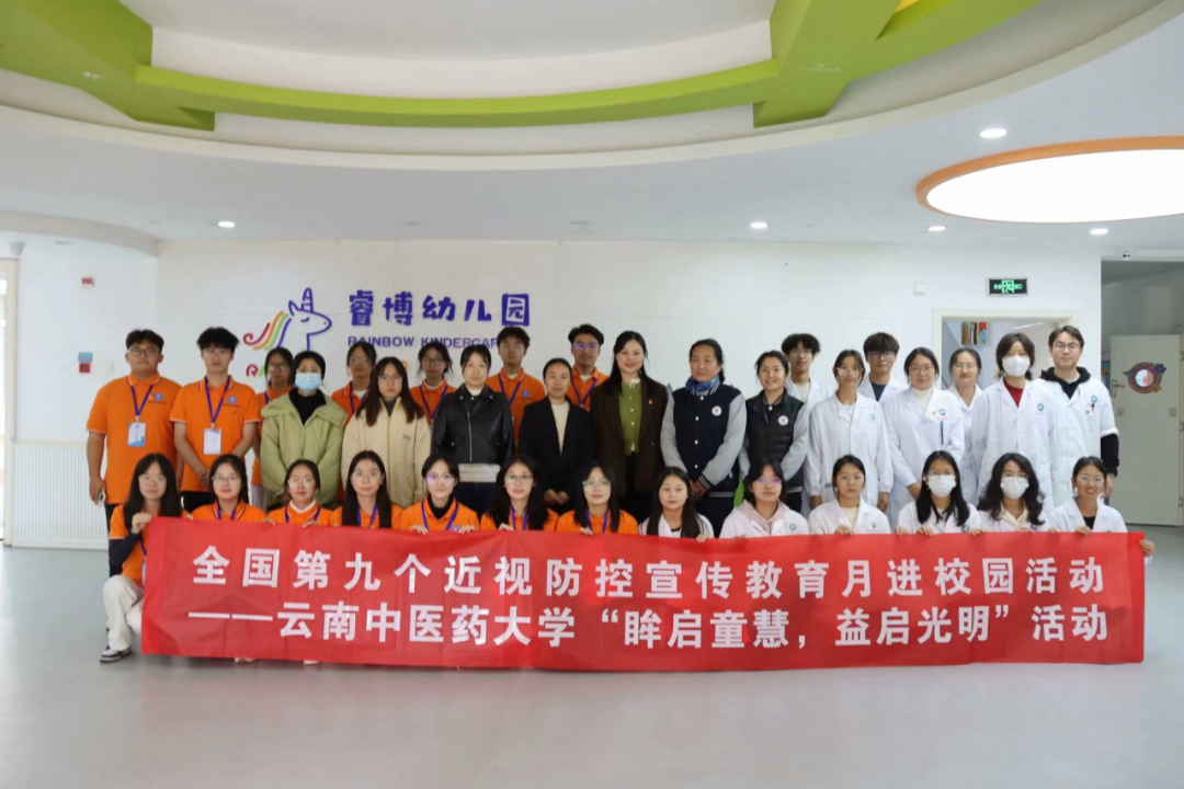 为积极响应全国近视防控宣传教育月活动号召,营造幼儿近视防控宣传教育的良好氛围,提升儿童及青少年群体近视防控及视力相关健康知识水平。校学生会、护理学院学生会于10月10日—11日分别到昆明市中英文睿博幼儿园、昆明理工大学附属学校开展“眸启童慧,益启光明”近视防控宣传教育活动。