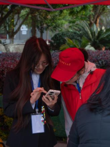 招聘会现场的志愿者们,穿梭于各个展位之间,为前来应聘的同学们提供指引和帮助,耐心细致地为同学们答疑解惑,为招聘会的顺利进行保驾护航。