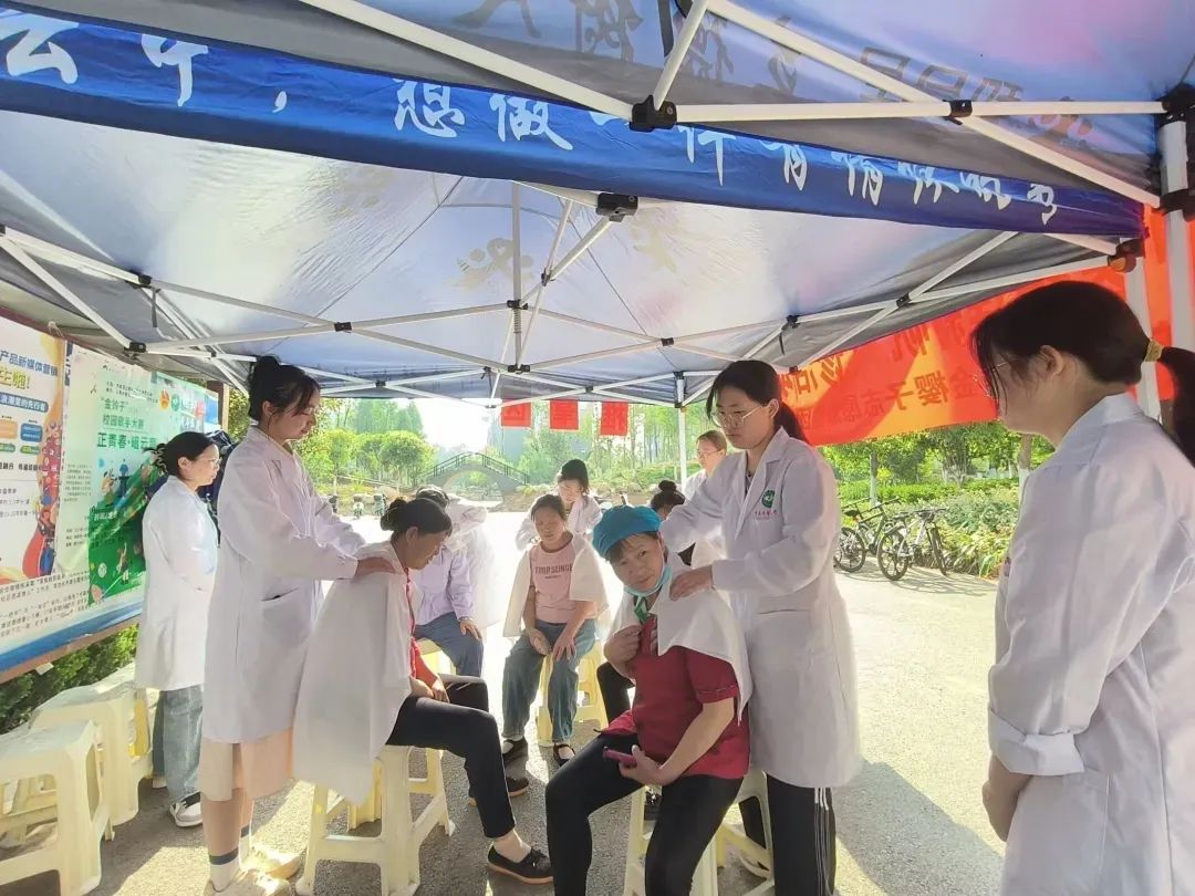 本次义诊活动包含多个中医护理体验项目,如耳穴埋籽、推拿按摩、艾灸、刮痧以及测量血压等,这些项目都是在中医理论的指导下,经过长期实践验证的有效护理方法,对于调理身体、增强免疫力有着显著的效果。