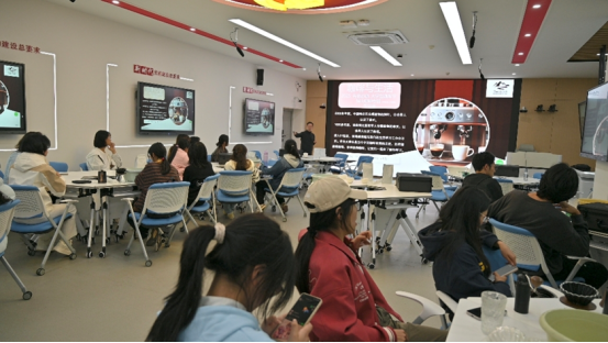 咖啡知识与创业分享课堂采用“理论讲解+实践操作”模式,以专业理论结合咖啡冲泡、品鉴等实践指导,让同学们深入了解咖啡文化、产业。